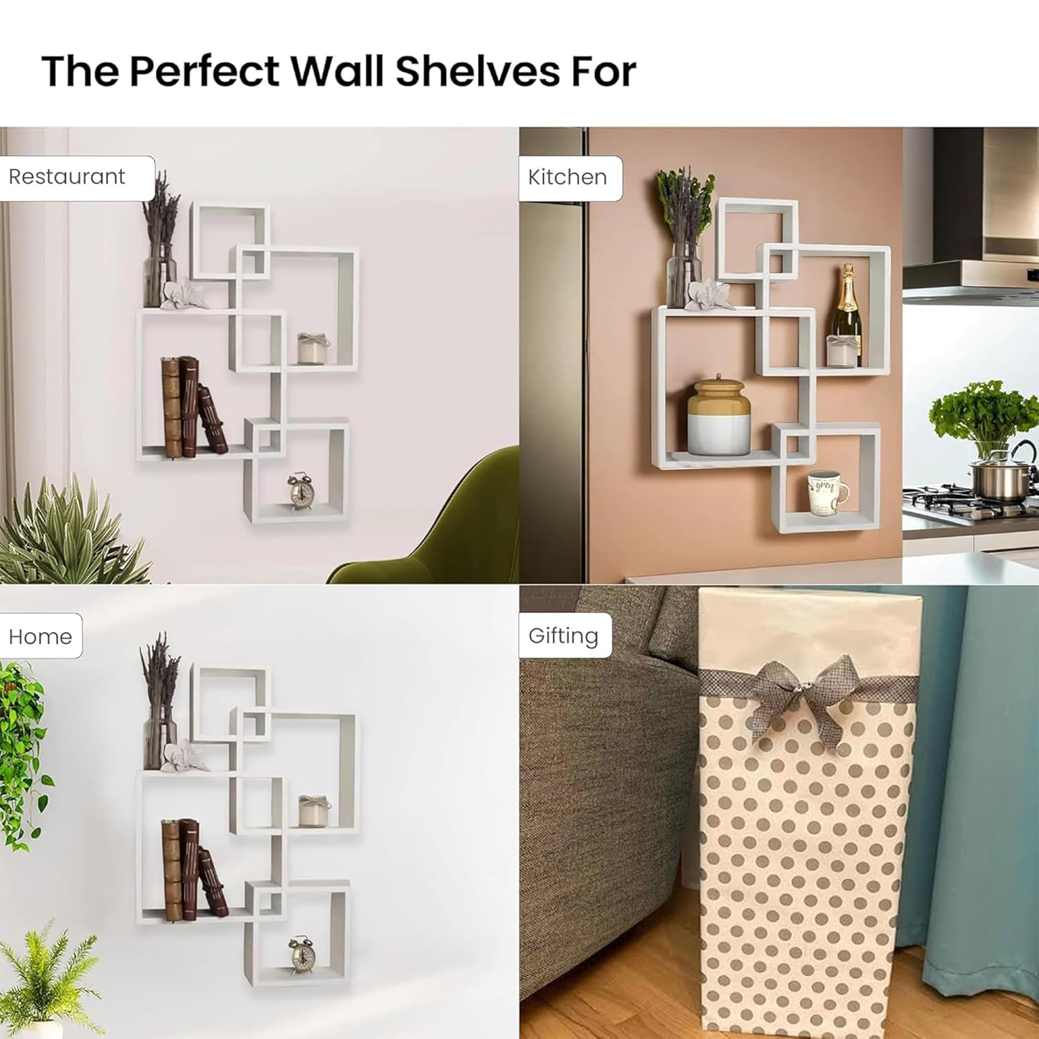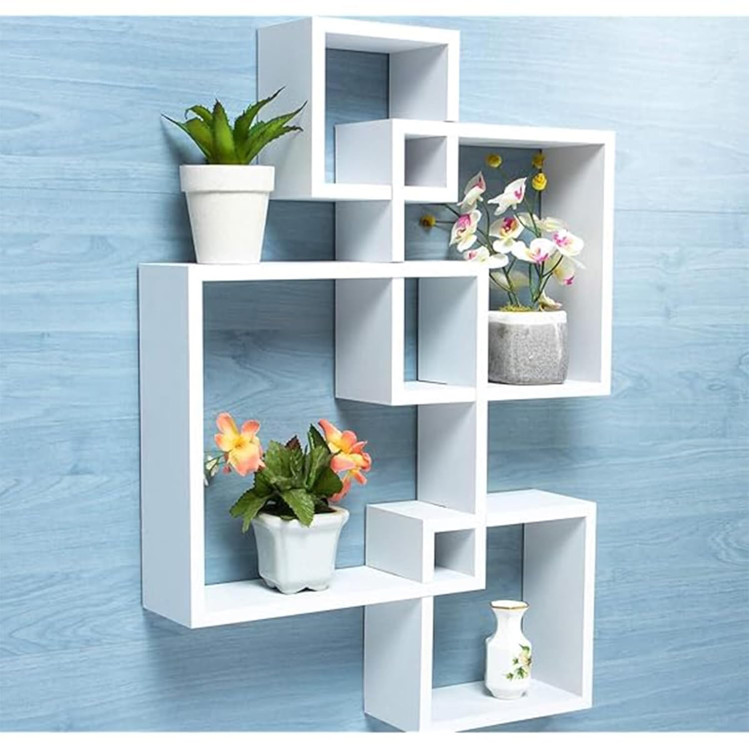Wudlix Wooden 4 Intersecting Wall Mount Wooden Wall Shelf for Bedroom & Living Room | DIY Assembly Book Shelves for Home Library | Wall Rack Shelf for Decor | White